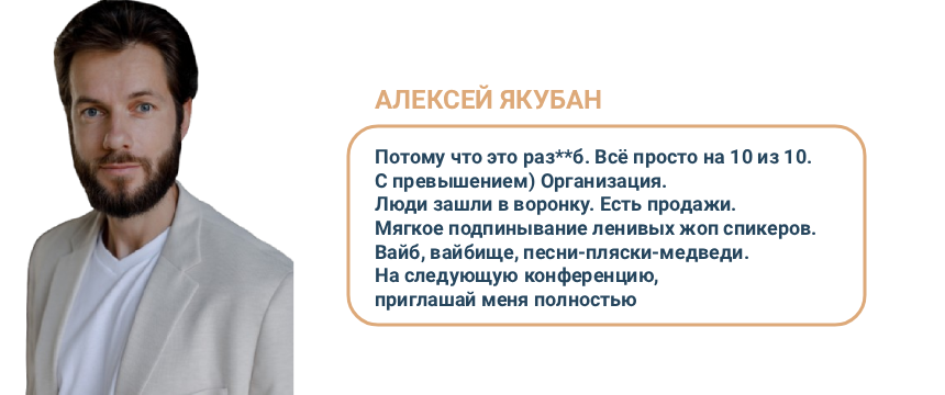 ➤Вы хотите не просто «вещать», а находить своих последователей и доносить идеи до тех, кто готов их внедрять и покупать. Вы стремитесь развивать свой бизнес через личный бренд, стать узнаваемым спикером и выступать регулярно, но пока нет системы и понимания, как именно продавать со сцены.